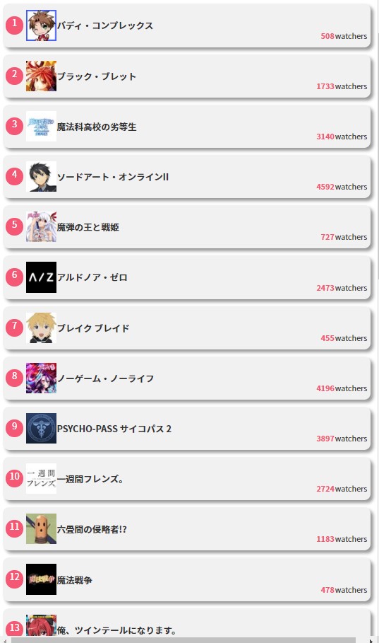 5chベストアニメランキング のツイート ゆう さん Yuu K 1101 見世棚 みせだな
